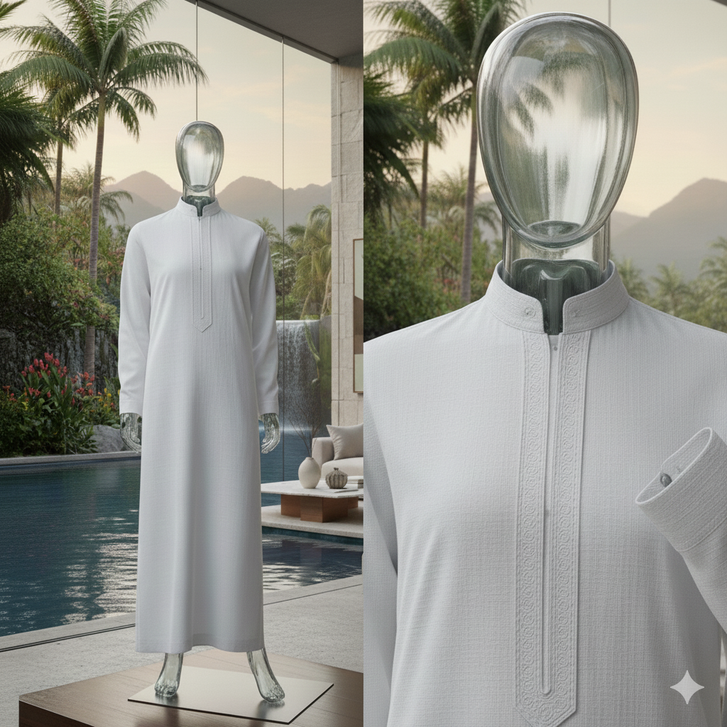Qamis élégant au design épuré, pensé pour allier confort, sobriété et raffinement. Une pièce intemporelle, adaptée au quotidien comme aux occasions spéciales.